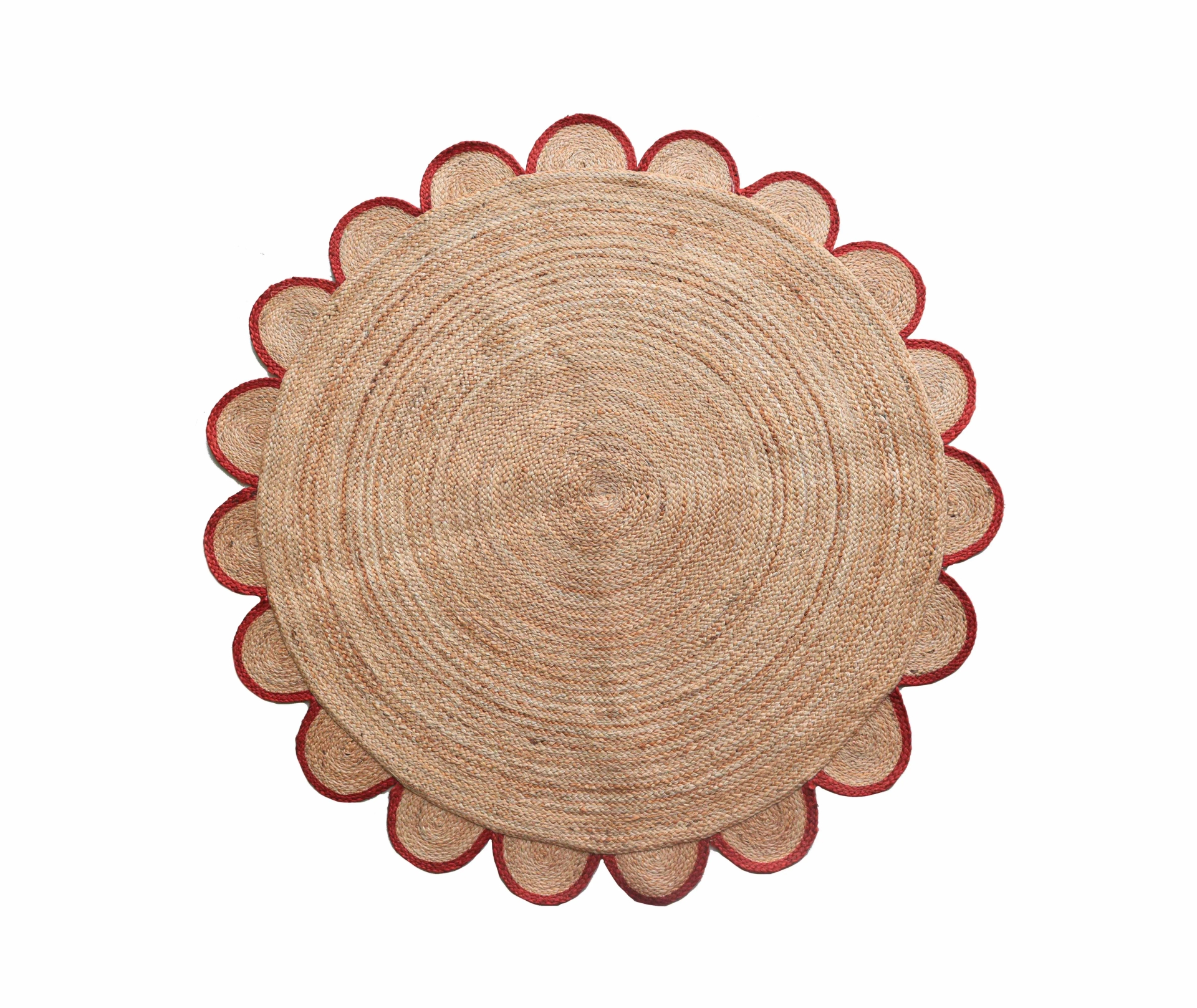 Bohemian Hand Braided Scalloped Natural Round Jute Rug with Customize Color Border