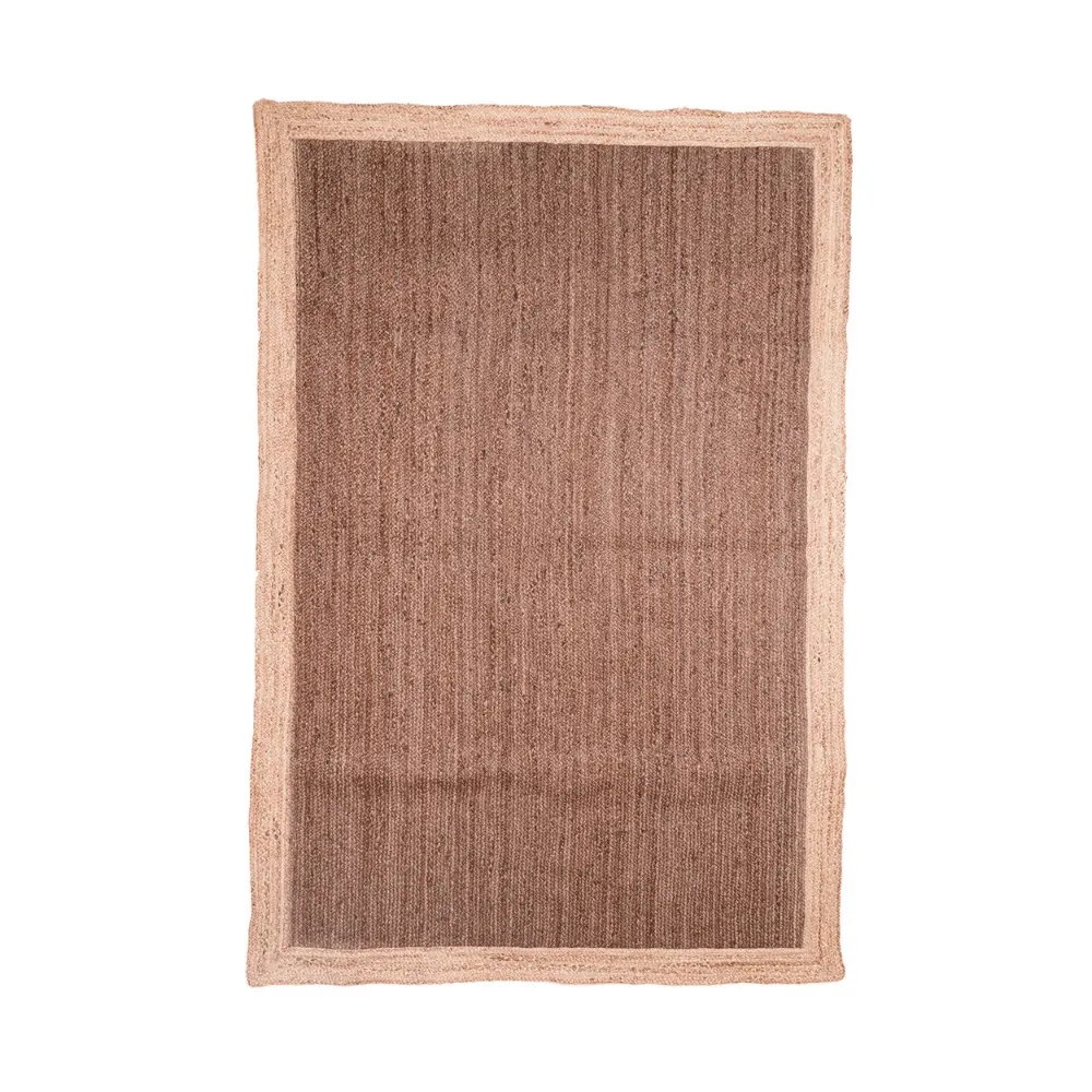 Hand Braided Brown Color Jute Rug with Natural Border