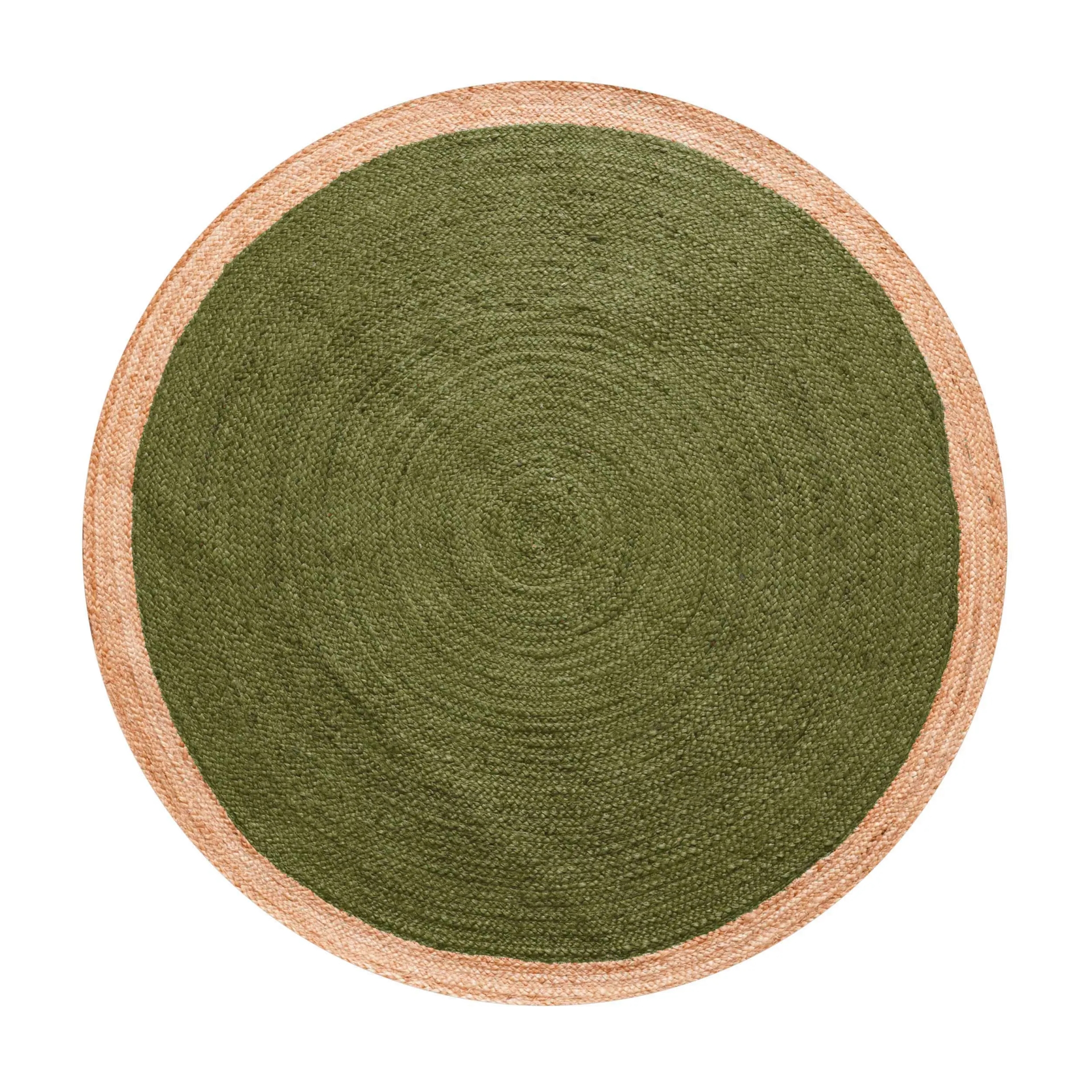 Hand Braided Custom Color Bohemian Jute Round Rug with Beige Border