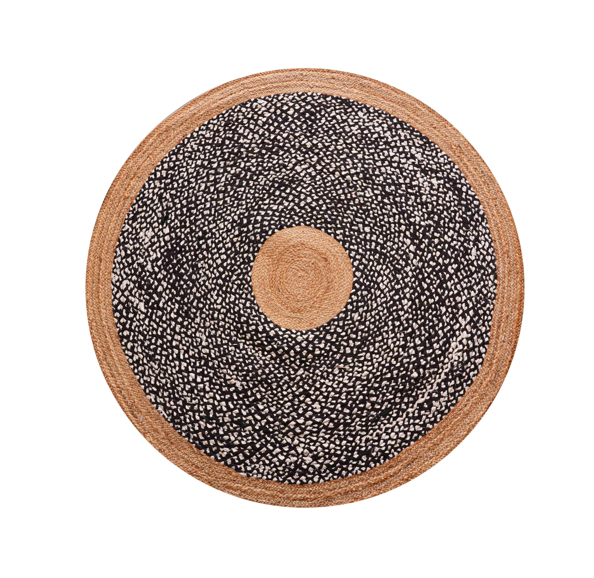 Indian Hand Braided Natural Jute Rug with Black and White Cotton Chindi Rug