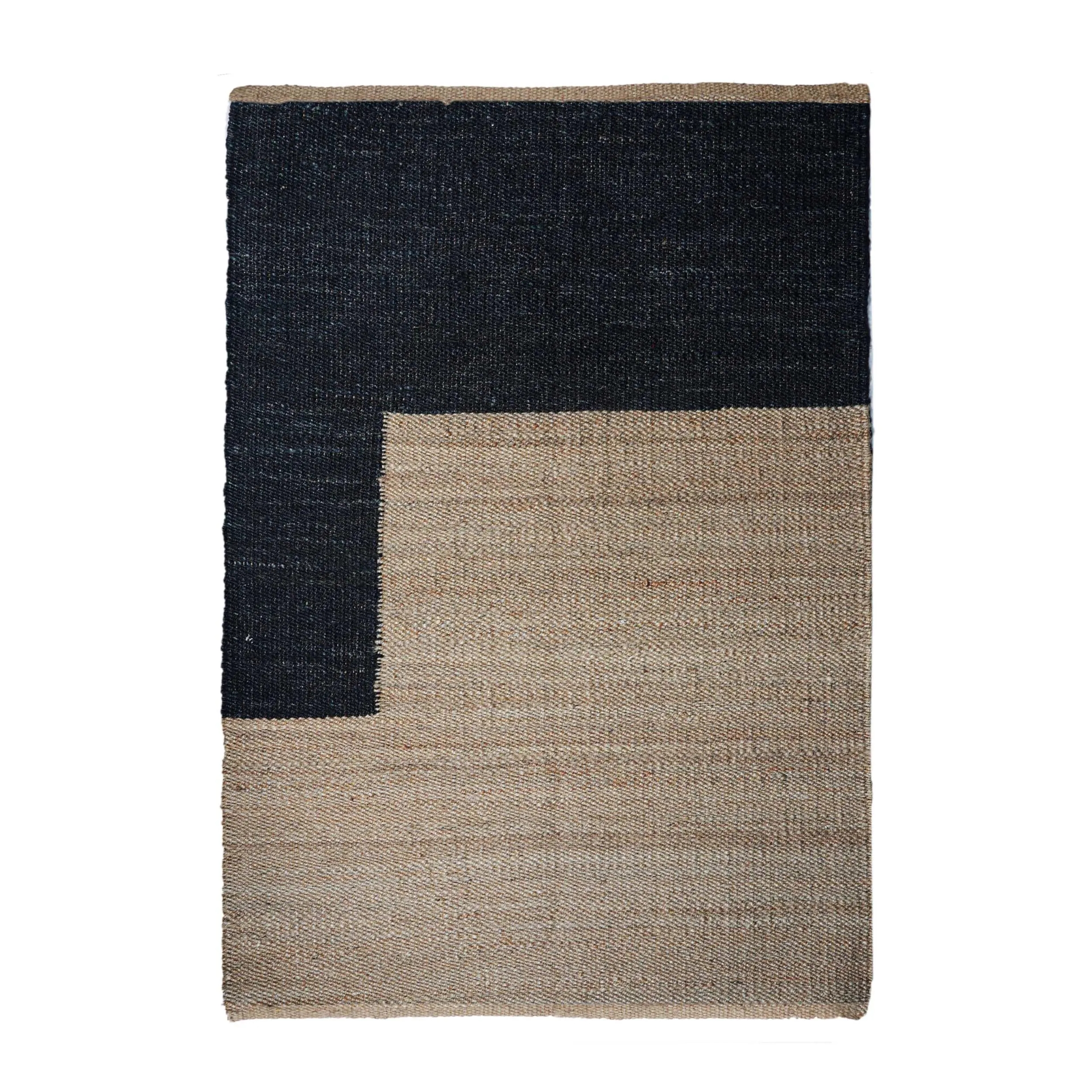 Indian Hand Loomed Natural Jute Hemp rug with Black Design