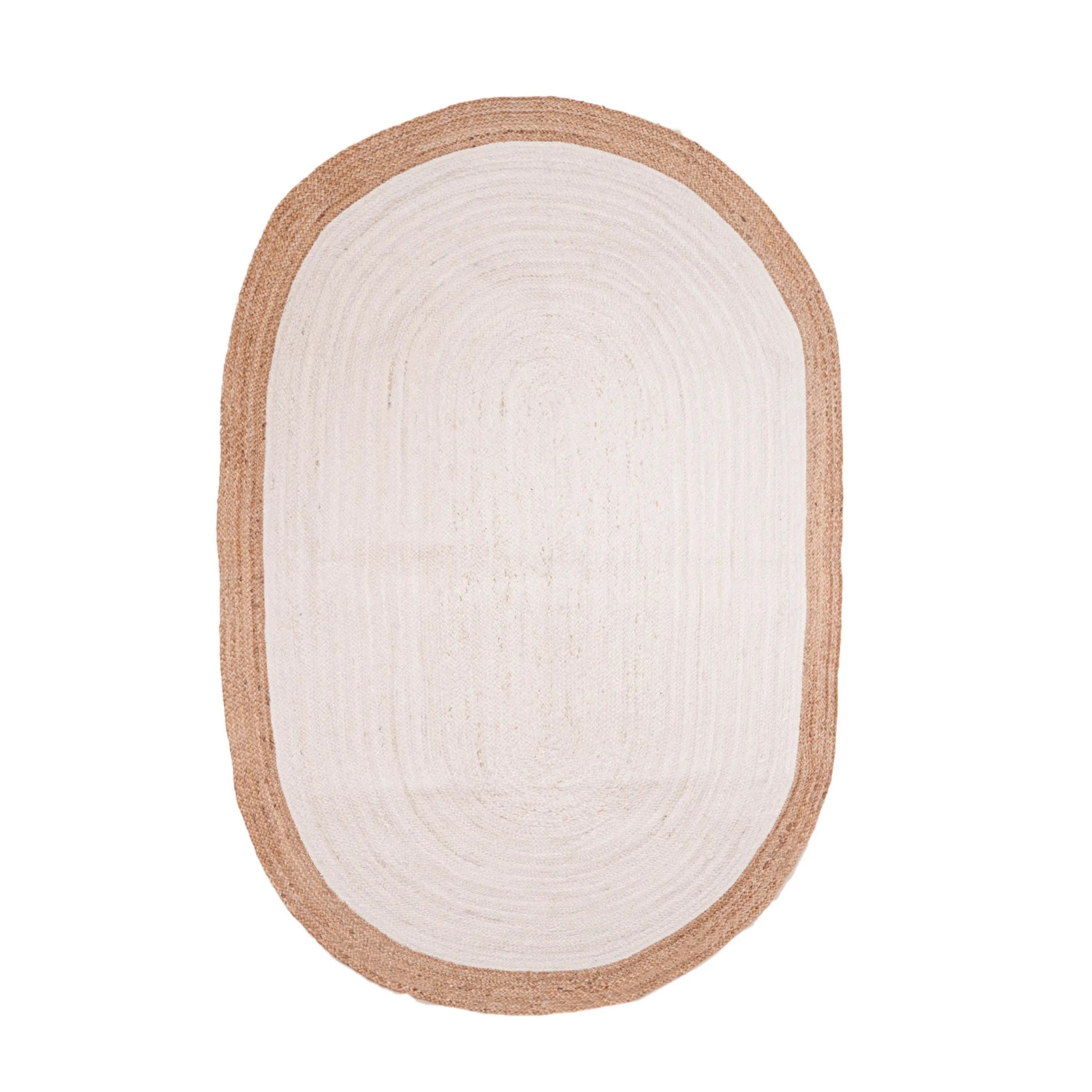 Indian Handmade Oval Jute Rug White Color with Beige Border