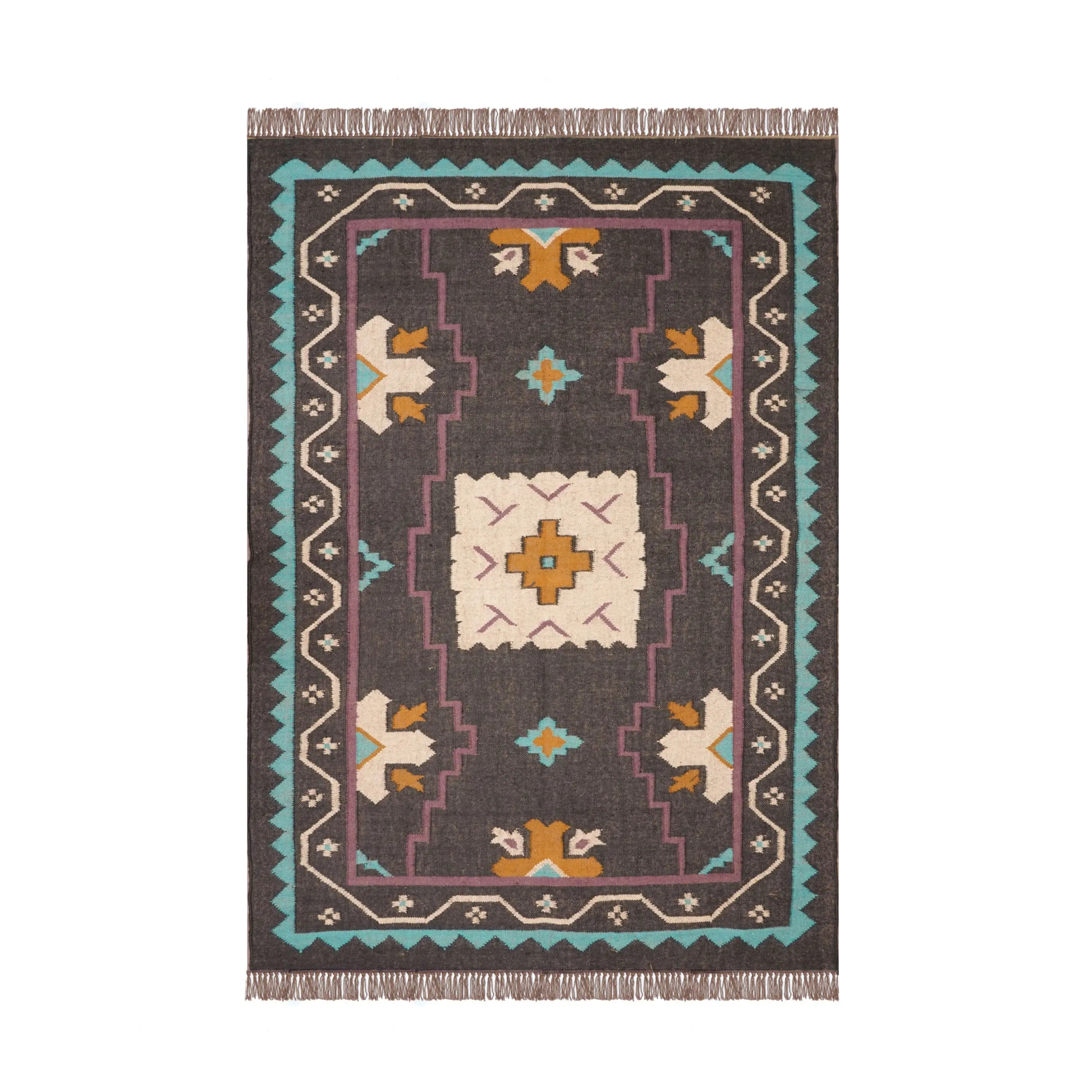 Indian Handwoven Bohemian Wool Jute Kilim Rug with Fringes Jute Rug Wool and Jute Rug Handmade Kilim Dhurrie Rug Traditional Indian jute Area rug