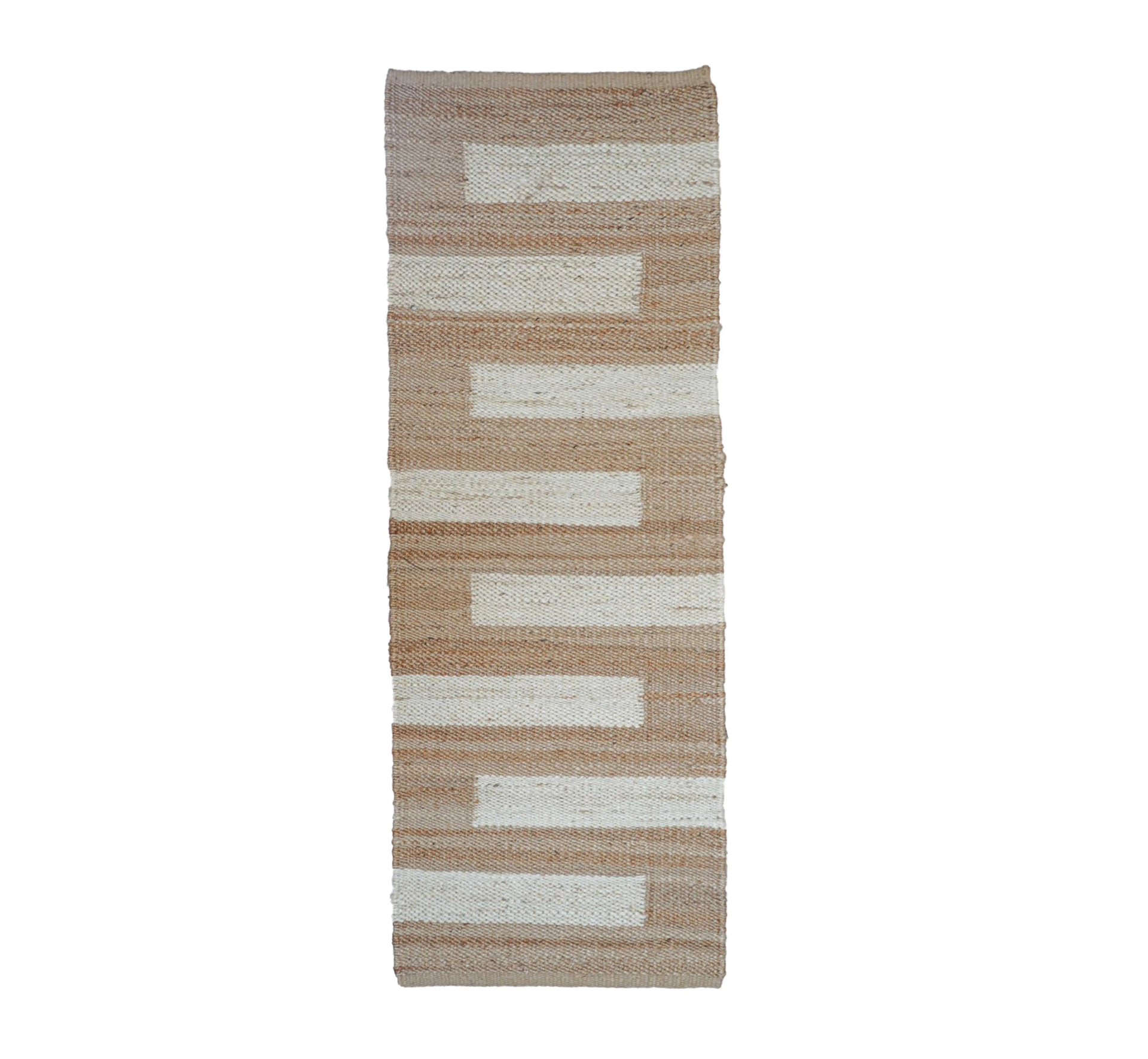 Indian Handwoven Natural Jute Hemp Runner with Off White Stripes