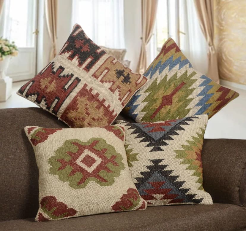 Set of 4 Handmade Wool Jute Kilim Cushion Covers